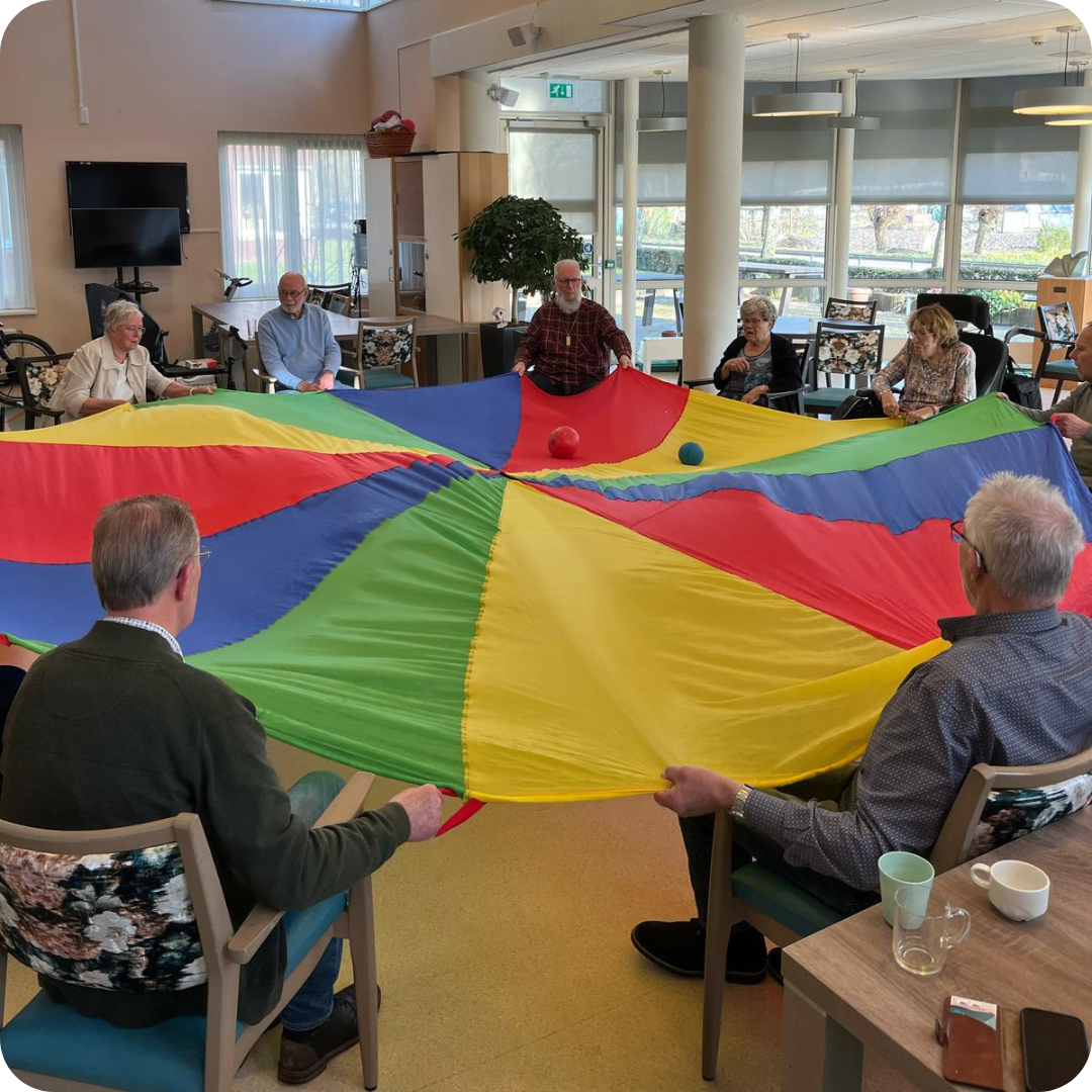 ”Geen dag is hetzelfde! We kijken echt per persoon wat iemand aankan en waar hij of zij zin in heeft. Naast therapieën bieden we creatieve activiteiten, geheugentraining, ontspanning, of juist gewoon even rusten. Sommige cliënte doen liever iets voor zichzelf zoals lezen. We hebben ook ‘PPraat’, een groepsgesprek waarin we ervaringen delen en tips geven. Bewegen vinden we belangrijk: ballon- badminton is populair, net als fietslabyrint. De dag begint om 9.45 en duurt tot 16.00 uur.”