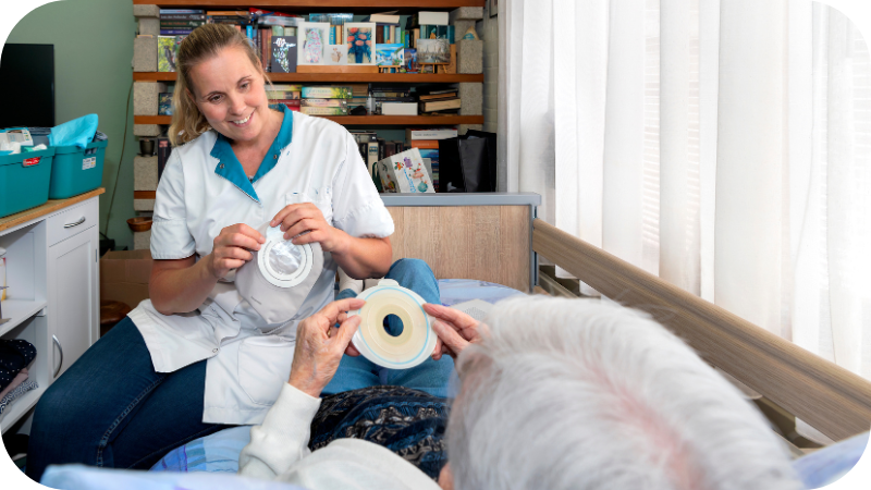 ”Toen het wijkteam vroeg of ik wilde meekijken”, begint Dunja Boltjes, gespecialiseerd verpleegkundige won- en stomazorg, ”heb ik mijn collega’s geadviseerd in de verzorging van de stoma.” Het ging een tijdlang goed, totdat Henny een zwart plekje zag en opnieuw de expertise van Dunja werd ingeschakeld. ”Voor ik het wist, lag ik op de operatietafel. Er is 50 centimeter darm verwijderd,” vertelt mevrouw Post. Wat bleek? De stoma begon door een slechte doorbloeding af te sterven. Door het nauwe contact tussen het wijkteam en de gespecialiseerd verpleegkundige was iedereen er op tijd bij.
